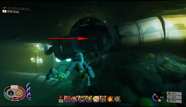 2、顺着管道潜入水下深处。