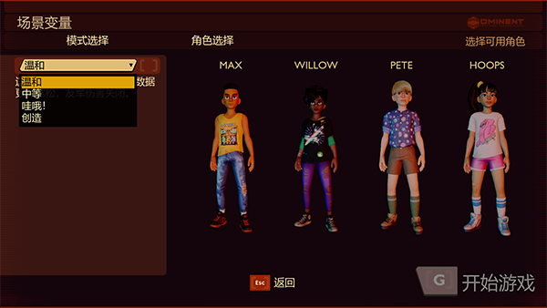 5、新建游戏后,我们需要对游戏的角色以及难度进行选择,新人玩家推荐模式选择温和或创造
