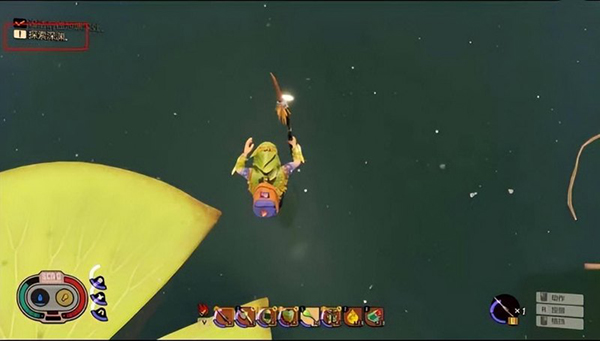 1、在游戏界面按照左上角的提示前往池塘深处。