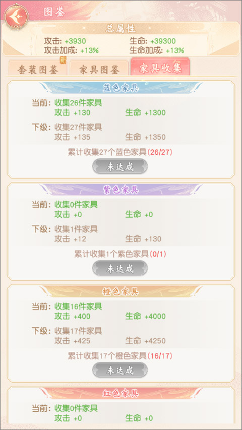 5、掌柜通过重复获得家具,能激活家具数量收集属性奖励