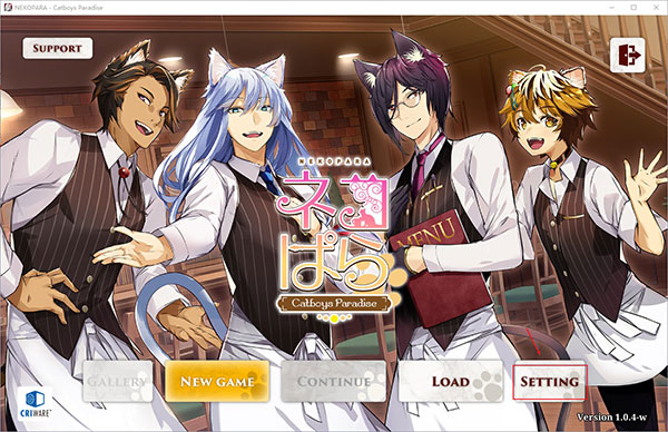 2、双击运行"NEKOPARA - Catboys Paradise.exe"程序,即可直接进入游戏主界面,如下图所示: