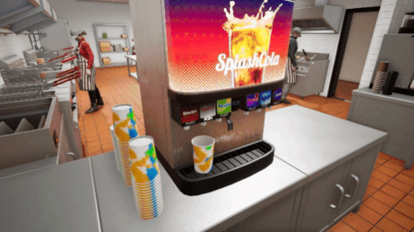 2、处理快餐店顺利运营所需的一切。体验真实的饮料机、烤架和油炸锅的操作。