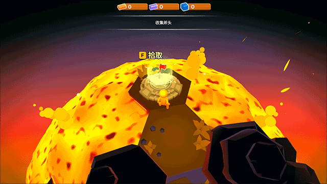 6、接下来,玩家就降生在一个充满岩浆的外星世界中,目前的任务是逃离这颗星球,需要玩家收集好相应的材料,建设火箭离开;