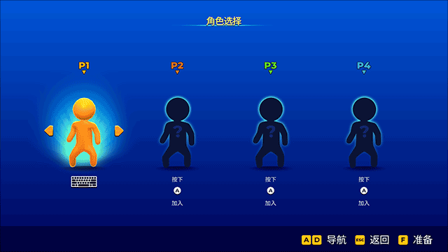 在角色选择界面按下F键建立人物,按下A和D键或左右方向键进行选择人物,点击F键就绪