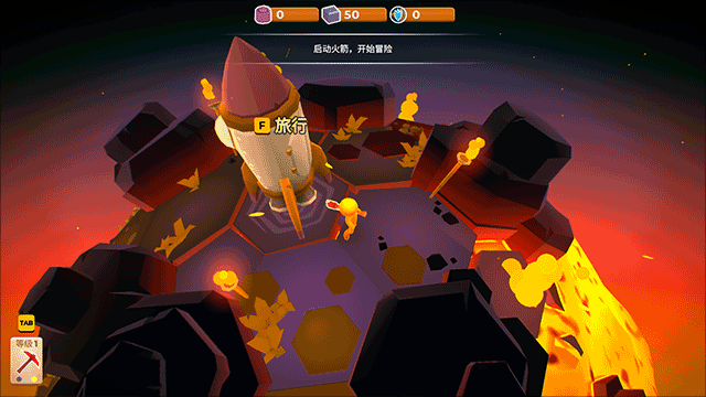 8、在收集了一定数目的木头、石头和核心能量后,就可以来到出生地完成建造火箭的步骤,最后搭乘火箭离开这里;