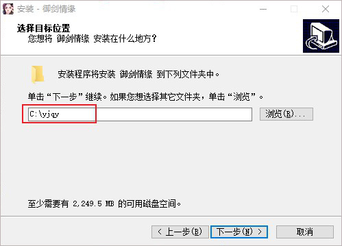3、默认安装目录【C:\yjqy】,依提示继续安装;