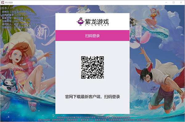 6、进入游戏后,自动获取游戏资源,界面将会出现紫龙游戏登录码,直接扫码登录即可;