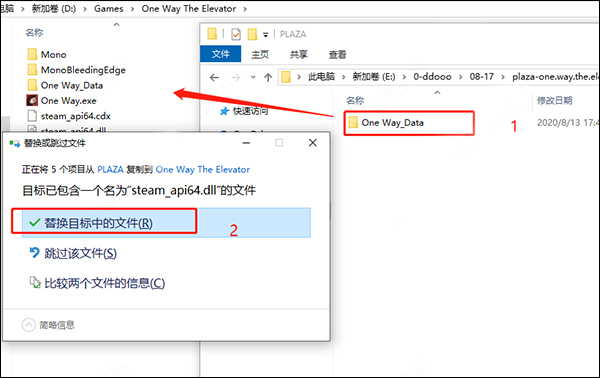 3、安装完成后先不要运行游戏,先将小编提供的PLAZA文件夹中的文件夹直接复制到安装游戏的根目录中,并进行替换;