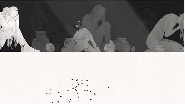 回头来看《GRIS》,毫无疑问它有着一个充满文艺气息的外在与相当不错的互动演出。那么它的情感内核,或者说故事性是否能触动人心呢?这其实很难评价,因为它在故事表达上虽有个比较明确的主题,但在情感宣泄上却又模糊而捉摸不透。从游戏开始我们便能从演出中了解主角GRIS失去了自己的声音,甚至连这个世界的色彩也被剥夺了。因此游戏流程中的6个章节无不围绕寻找来展开,而随着色彩的重现,歌声的复鸣,故事背后的深意也随之显山露水。