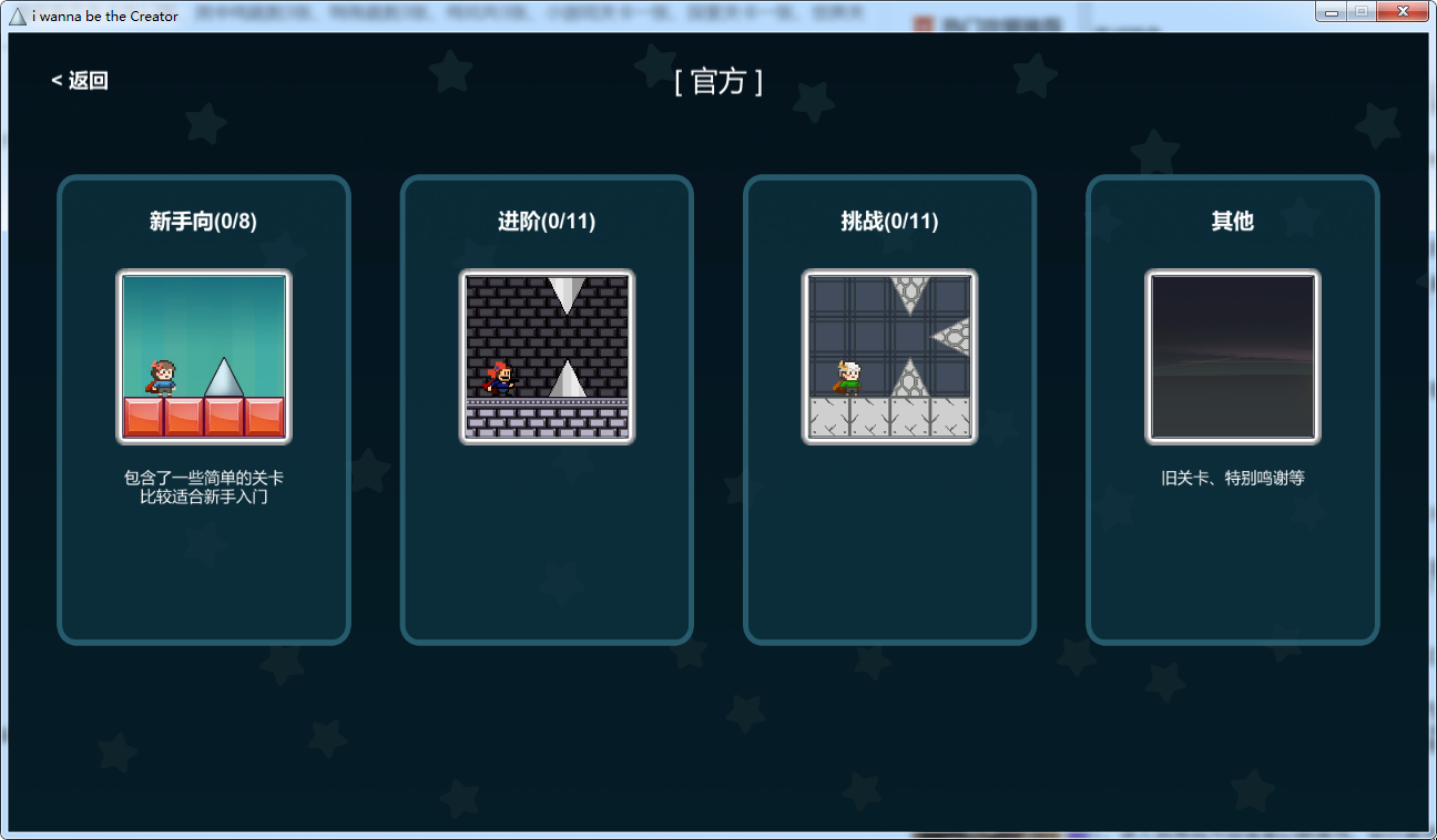 我想成为创造者电脑版是一款可以自制关卡的IWBTG同人游戏,英文名为I wanna be the Creator,各大up主都强力推荐,游戏自身为我们带来了超过30张颇具难度的挑战关卡,我们需要操控小人以最小的生命值损失来进行场景的解谜以及完成复杂的平台跳跃动作,收集关卡内的金币以及钻石等获取更高的分数。同时,我想成为创造者游戏还为玩家提供了关卡编辑器,玩家可以自行制作或者是修改关卡的内容,全球海量的玩家为游戏制作了各种各样的关卡,目前已经有近10W张丰富有趣的关卡地图等待玩家们发现以及挑战了,同时还支持将制作编辑好的关卡分享到游戏中,让更多的玩家能够进行挑战,有兴趣的朋友快来下载体验吧。