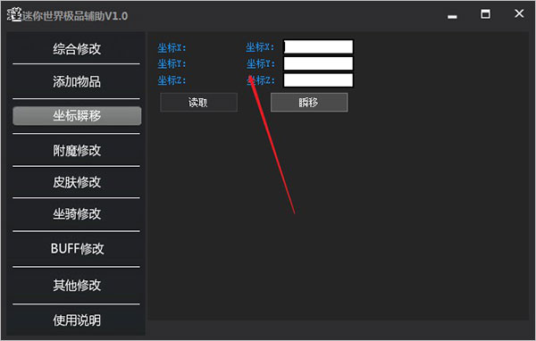 4、玩家可输入坐标进行瞬间移动;