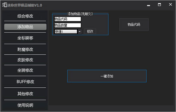 3、可一键添加物品,物品代码;