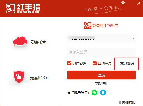 3、密码找回也可以在官网“个人中心”,通过手机号和邮箱找回密码;但目前由于红手指新用户的账户都是通过手机注册的, 所以红手指新用户只支持手机找回密码的方式;对于通过邮箱注册的红手指老用户和已经在红手指远程手游平台上通过完善用户资料, 填写了邮箱的新用户,则可以通过邮箱方式找回;