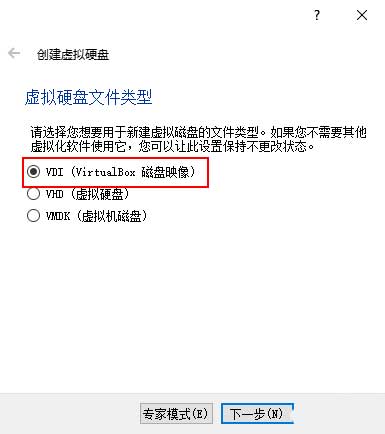 4、设置虚拟硬盘文件类型,这里选择DVI格式: