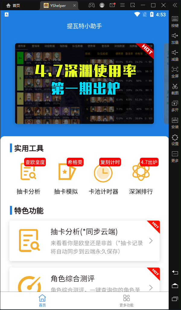 更新内容:团队伤害计算器、角色技能、历史卡池及卡池倒计时