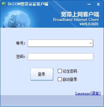 2、接着弹出客户端登录界面框,说明安装已完成。客户端的安装目录默认在C:\Drcom\DrUpdateClient下,如没添加快捷方式,可在双击DrMain.exe运行客户端;