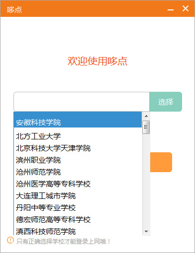 首次使用哆点PC版时,需先选择所在院校进行网络配置