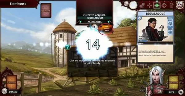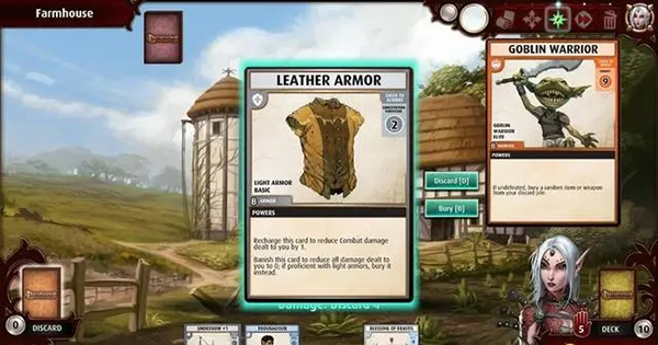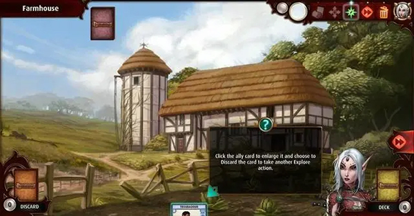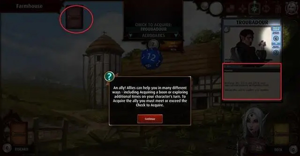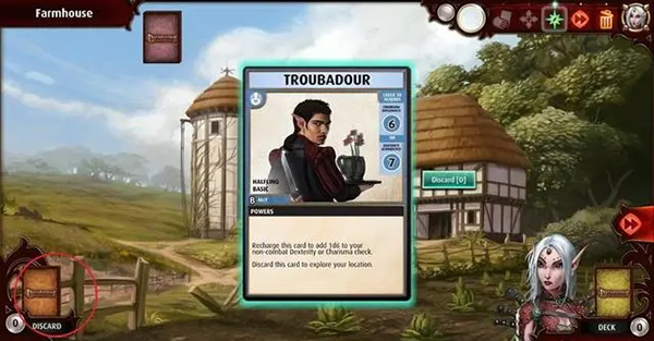不过我们可以使用刚刚获得的盟友,点击他放大,可以看到右侧的弃牌(discard)选项。