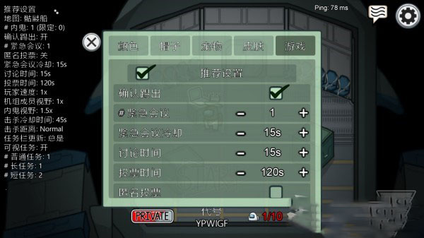 2、内鬼的数目为1-3人,可自行设置,但一般都会设置成1个内鬼,因为这样才刺激,否则内鬼们一下子就把船员Kill光了就不好玩啦!