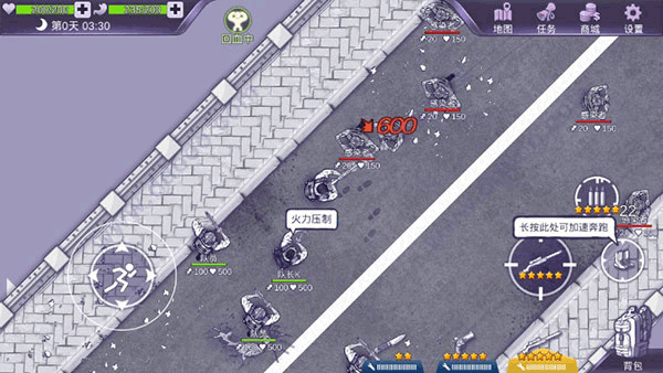 游戏采用俯视视角,副本无迷雾,一切地形与怪物尽收眼底,是迎难而上,还是避其锋芒都由您来决定;双轮盘操作,可一边移动一边射击,武器蓄力时,亦能利用走位躲掉怪物和丧尸的攻击。