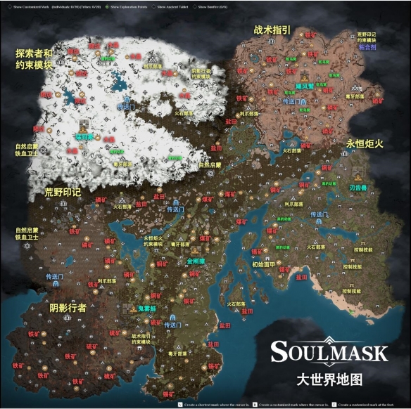 灵魂面甲的地图可以分为六个大区域,分别是雨林、丘陵、湿地、火山、沙漠高原和雪山。
