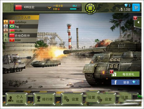 游戏中的战斗场地多样,玩家随着等级的提升可以不断解锁新的战斗场地,体验不同的战场乐趣。同时坦克库中还藏着不同的坦克战车,玩家随着军衔的提升或者直接用金币钻石购买,可以更换各种属性不同,造型多样的钢铁战车。让玩家的游戏体验性得到提升,不断给玩家新鲜不同的游戏感受,激发玩家玩游戏的欲望。