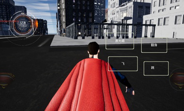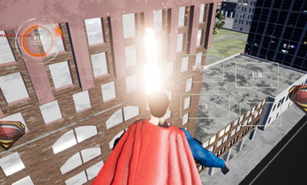 3、点击激光眼,可以控制超人发射激光破坏这个虚拟世界中建筑物;