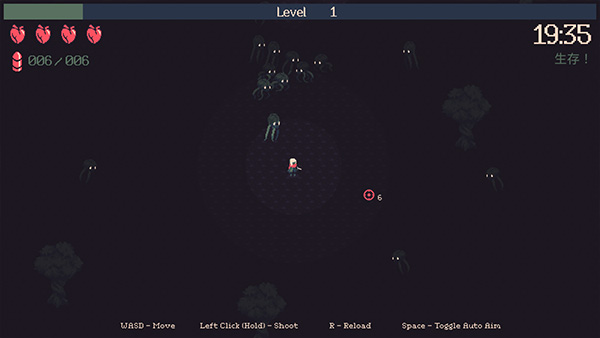 8、在这里,玩家就可以开始战斗了,wasd控制人物移动,鼠标左键射击,R键换弹,按下space键,就可以实现自动射击了;
