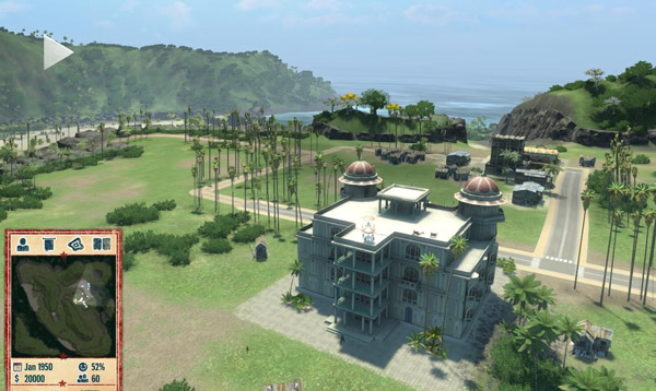 在游戏中,玩家需要扮演一名热带岛屿的领袖,刚开始时,你的土地上的居民很少、国库中的资金也不多,科学领域更是一片空白,你需要从空荡的平地开始建设一座繁荣的海岛城市,以各种方式建设来繁荣自己的城市。你可以发扬民主传统,做一名开明的领袖;或者进行严酷的军事独裁,成为一名彻底的暴君,而且借助于全新的游戏引擎,你可以在3D画面下观察你的国家状况。