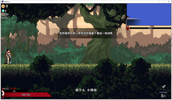 2、按下A、D移动;