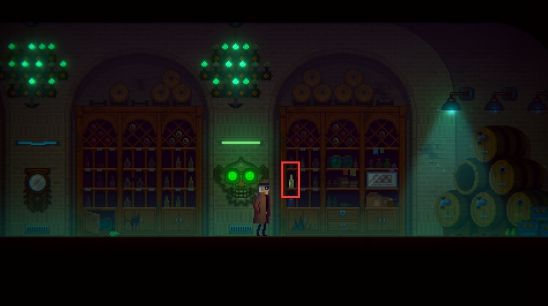 然后钟表右边的柜子上会再出现一瓶酒,拿上回到最左边的酒柜。