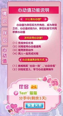 2、增加心动值的道具可以在商城购买,每日通过使用道具获得心动值上限为5000(每对情侣每天通过道具