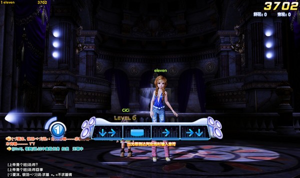 3、炫舞模式:传统模式和节奏模式的结合,支持4键和8键形式。在歌曲比较柔和的部分将使用传统音感输入方式操作,而当进入到歌曲的高潮部分时,画面会提示进入“Mode Change”段落,进入节奏模式的输入单元。当两种操作方式切换时,连P和Combo的累计将会被中断。支持4键和8键形式。