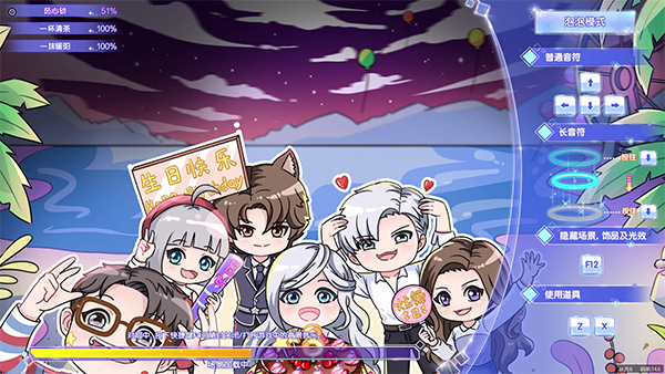 1、传统模式:继承了传统操作的游戏模式,并支持4键和8键的形式,与4键的上下左右四个方向相比,8键增加了左上、右上、左下、右下四个方位,难度更大。在传统模式中,音符序列的LV将逐渐递增,最高至LV9。传统模式需要尽可能多地操作出Perfect判定并累计连P数,从而获得更高的分数。