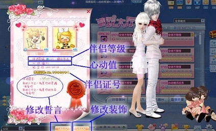 已拥有伴侣的玩家,在日常游戏中会获得心动值。心动值的提升能够提升伴侣等级,让你拥有更多的装饰结 婚证的权利。