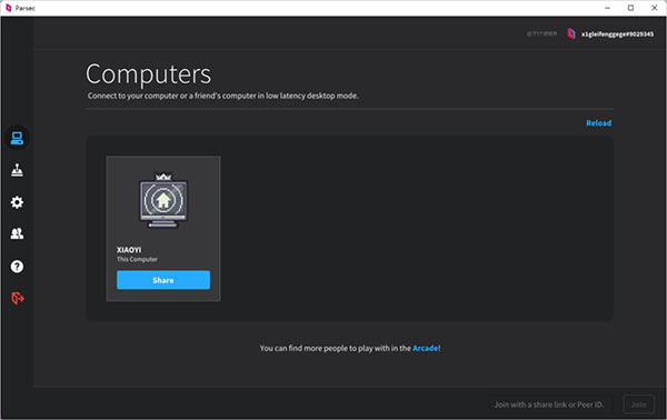 如果你找不到小伙伴跟你一起联机玩,在 Parsec 里面还有个 Arcade 功能,可以直接把游戏链接分享出去,让其它在线的用户加入一起玩。又或者你可以加入其它用户的分享链接里面玩游戏;