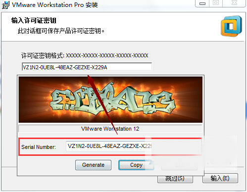 7、打开注册机,点击“Generate”,然后将生成的VMware 12注册码复制负内即可完成激活;