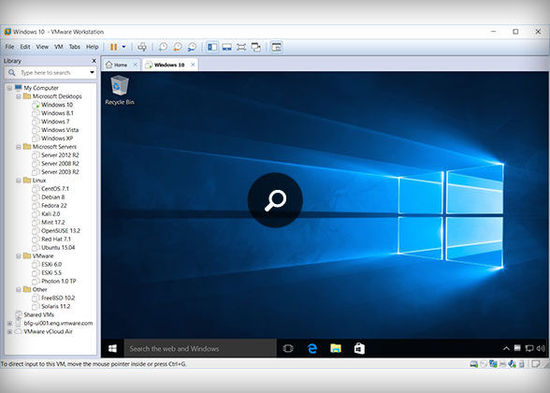 Workstation 12 Pro 是借助您的现有 Windows 或 Linux PC 评估和测试 Windows 10 的最佳方法。使用 Workstation“虚拟机向导”,您只需几个简单的步骤即可从磁盘或 ISO 映像在虚拟机中轻松地安装 Windows 10。借助 Workstation 12 Pro,您可以开始充分利用 Windows 10 最新功能(例如私人数字助理 Cortana(微软小娜)、新的 Edge 网络浏览器中的墨迹书写功能),您甚至可以开始为 Windows 10 设备构建通用应用。您甚至可以要求 Cortana(微软小娜)直接从 Windows 10 启动 VMware Workstation。