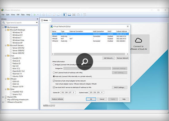 借助更强大的 IPv6 支持(包括 IPv6 到 IPv4 网络地址转换(6to4 和 4to6)),用户可以创建比以往任何时候都更加复杂的网络拓扑。Workstation 12 Pro 虚拟网络编辑器可用于添加和删除 IPv4 或 IPv6 网络,并创建自定义的虚拟网络连接配置,因而是适用于测试和演示环境并且不影响 PC 网络配置的理想产品。