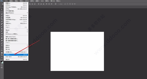 1、首先第一步,我们只要在电脑上安装好这款软件,然后打开任意一款有打印功能的软件即可,小编就以PS软件来跟大家演示,安装好软件之后点击打开PS,之后点击左上角的文件选项