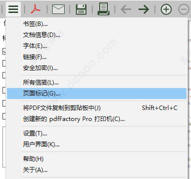 如图所示,打开专业版顶部工具中的汉堡菜单,并选择其中的“页面标记”选项,即可打开页面标记的设置面板。