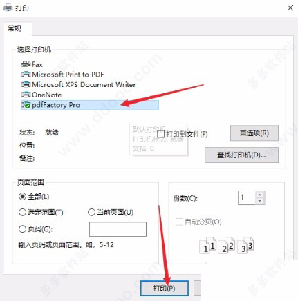 4、如果是使用其他软件进行打印的话,有可能会弹出一个打印窗口,同样的在其中选择打印机为pdffactory pro这款软件即可。