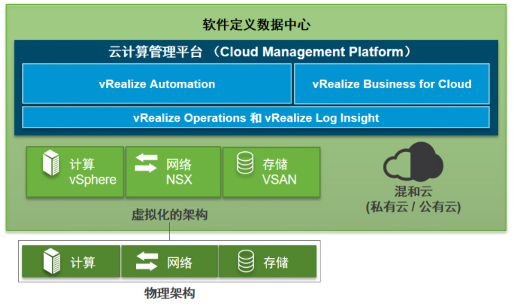 VMware vRealize Suite是vRealize产品家族的套件产品,是一个真正的企业级云计算管理平台,同时也是一个多云环境的云计算管理解决方案,为 IT 组织提供了一个基于 DevOps 和 ML 原则的基础架构自动化、一致运维和监管的现代平台。软件可以作为一个云管平台来把这些虚拟资源调配 (Provision) 成软件定义的数据中心,其管理的不仅仅是数据中心内部的资源,还能统一管理公有云上的资源,为客户提供一个混合云环境。