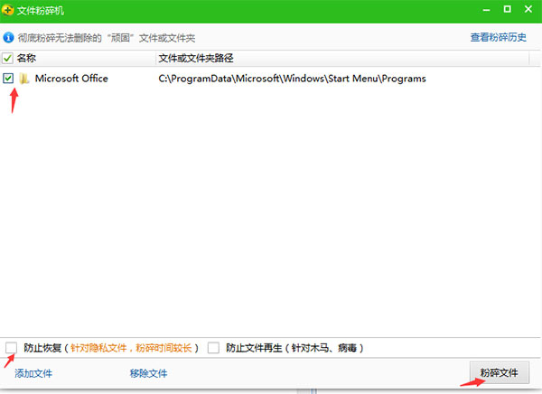 选择“使用360强力卸载”,后会出现一个提示,在左下方”防止恢复“前面打勾(文件名前面如果没有打勾也要打上勾),再选择粉碎文件就卸载了;