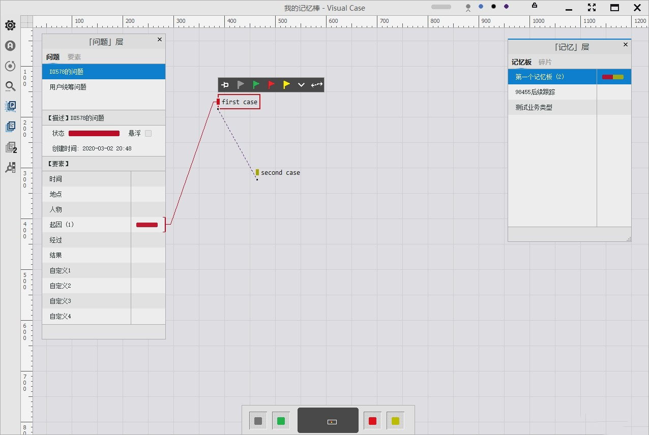 Visual Case官方版是一款功能强大、简单专业的脑力增强器,也是一款可视化问题管理软件,内置记忆棒文件、记忆层、记忆板、问题层、要素、影子记忆板、图片和地图、碎片形态转换、Touch等多种组件功能,可以帮助用户快速高效的进行收集碎片、收集问题、调整事态、关联碎片、梳理思维、记忆协作等操作。