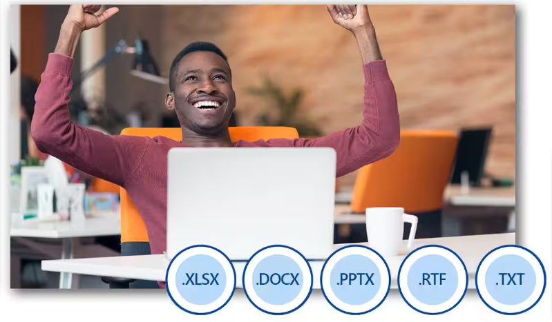 您可以在每个 WordPerfect Office 应用程序中打开、编辑和保存最新的 Microsoft Office 文件格式。无论是 Word 文档 (DOCX)、电子表格 (XLSX) 还是演示文稿 (PPTX),WordPerfect Office 都能确保无忧的协作和文件交换。