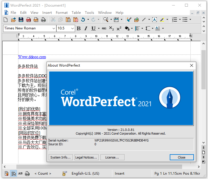 9、好了,软件成功激活,可以免费使用Corel WordPerfect Office Professional 2021特别版啦。