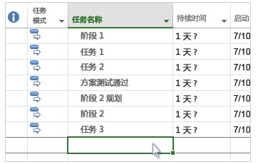 在底部的任务列表中,第一个空的任务名称字段中键入一个名称,然后按 Enter。