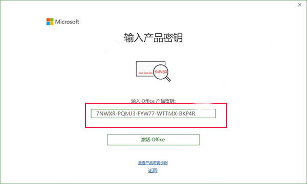 6、弹出输入产品密钥,自行输入project2019专业版产品密钥(以下任选一个)