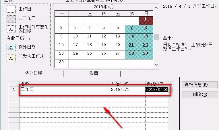 项目 -> 更改工作时间,例外日期:节假日调班的情况下可以设置例外日期